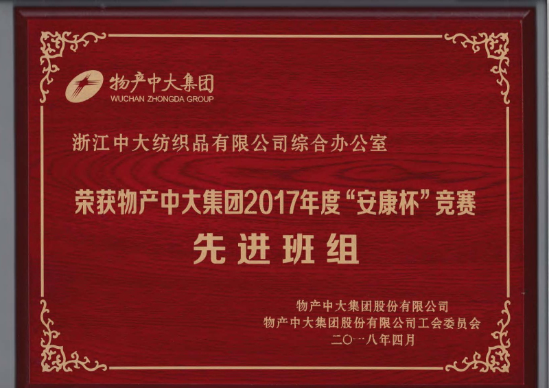 公司辦公室積極參與物產中大集團和集團工會舉辦的2017年度“安康杯”競賽,獲先進班組稱號。